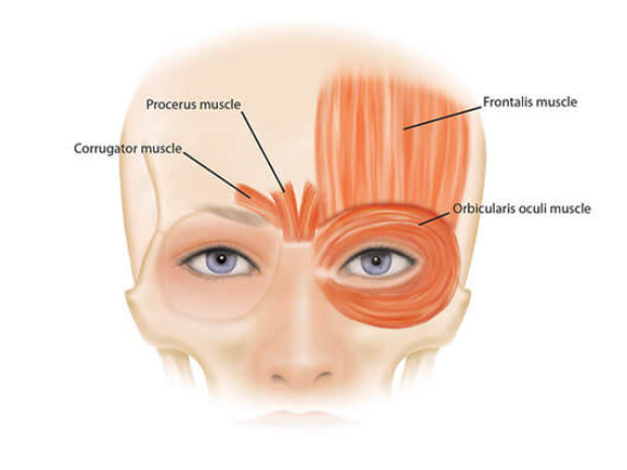 Is a small, pyramidal muscle that belongs to the circumorbital and palpebral group of facial muscles, along with the levator palpebrae superioris and orbicularis oculi muscles. Like other facial muscles, corrugator supercilii is innervated by branches of the facial nerve .